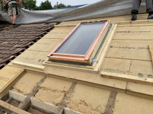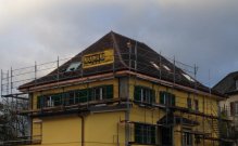 Rénovation complète: échafaudage, ferblanterie cuivre , isolation et panneaux solaires .
