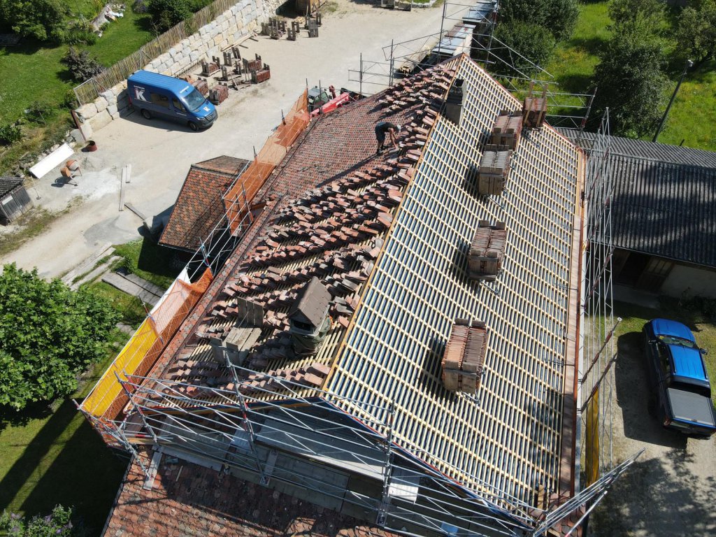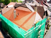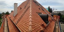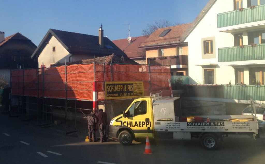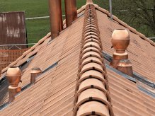 Echafaudage,ferblanterie et couverture en tuiles Joran flammée.