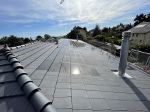 - Pose de 288 m2 de tuile solaire Panotron sur le pan Nord. 21.6 kWp