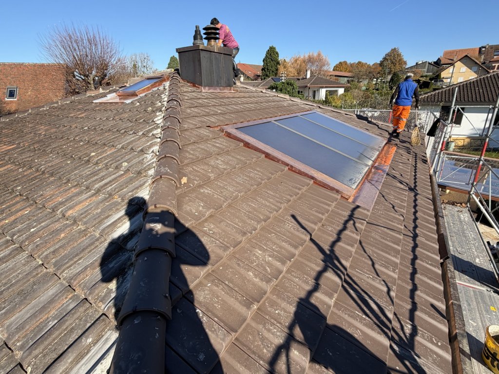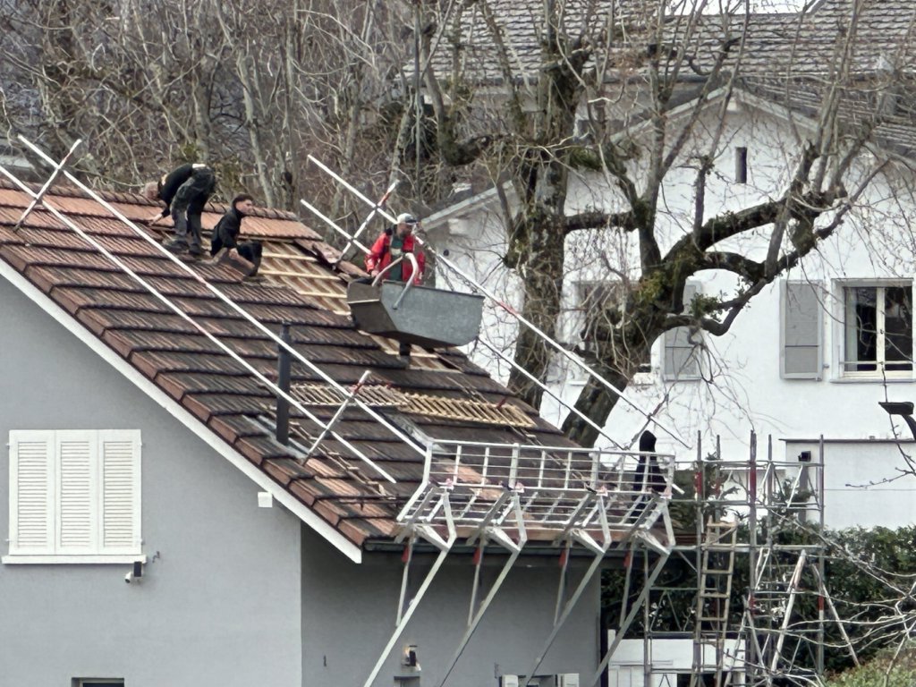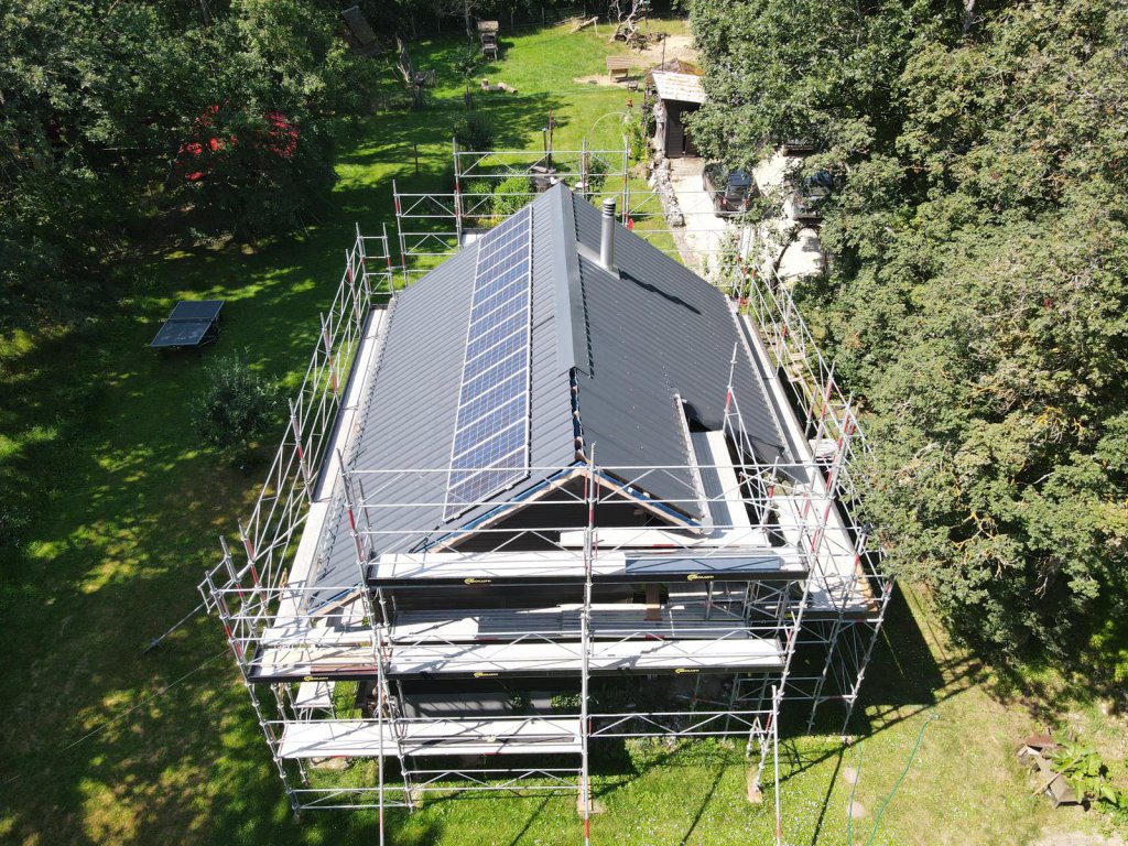 Echafaudages,rénovation de la sous-couverture et installation de panneaux solaires photovoltaïque.
