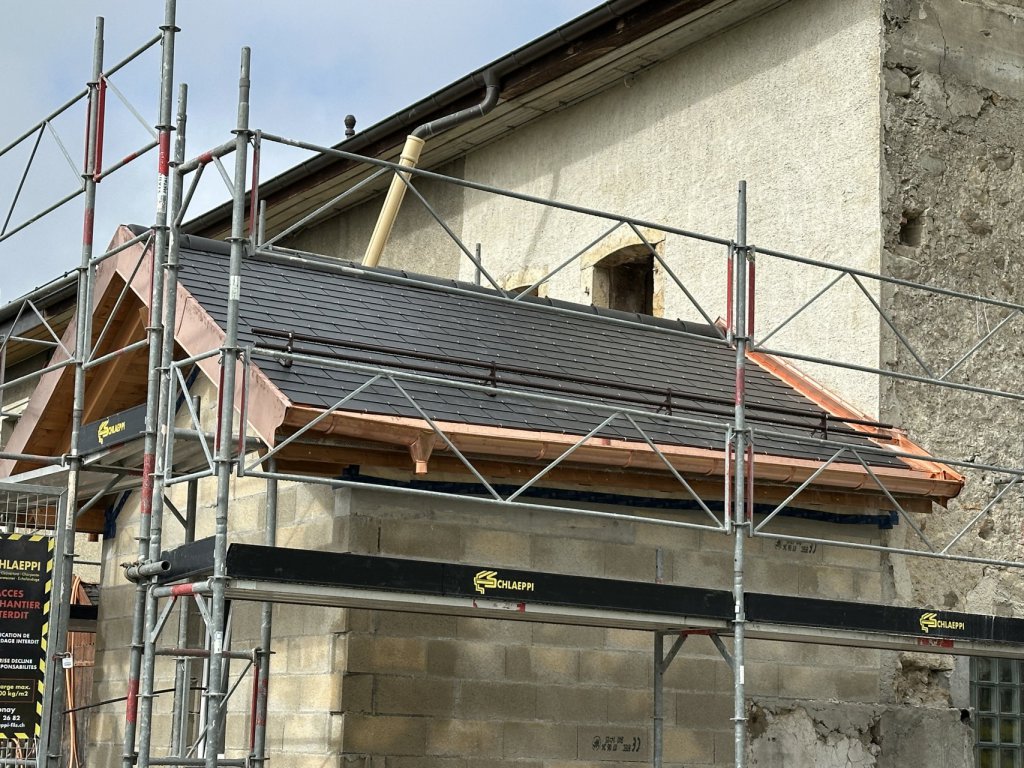 Echafaudage et nouvelle sous-couverture.Tuiles anthracites
