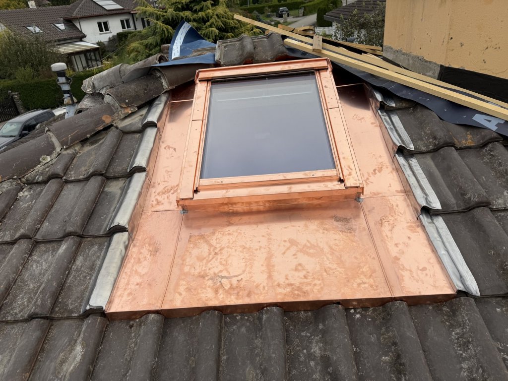 Couverture en tuile Bardonnex et ferblanterie en cuivre.